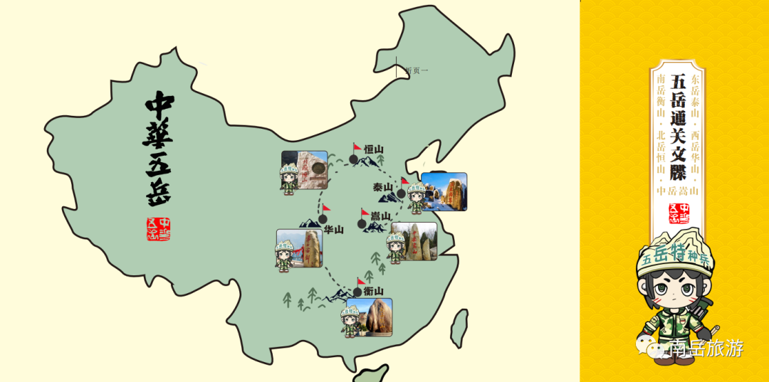 參與者于活動期間(jiān)到達東嶽泰山(shān)、西嶽華山(shān)、南嶽衡山(shān)、中嶽嵩山(shān)、北嶽恒山(shān)景區(qū)中任何一嶽的遊客服務中心,都可(kě)以在指定地點獲得(de)主辦方贈送的“五嶽”通(tōng)關文牒,蓋上(shàng)當地景區(qū)的通(tōng)關印章。到達山(shān)頂地标後,将通(tōng)關文牒置于胸前拍張高(gāo)清圖,連同實時(shí)定位一并上(shàng)傳至五嶽特種兵二維碼報名通(tōng)道(dào),視(shì)為(wèi)打卡一嶽成功。